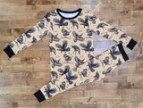 Cozy comfort meets outdoor charm in our Wild Turkey Bamboo 2-Piece Set. Featuring long sleeves and matching pants in our best-selling flying turkey print, this set is perfect for cooler days at the cabin, early morning outings, or just relaxing at home.