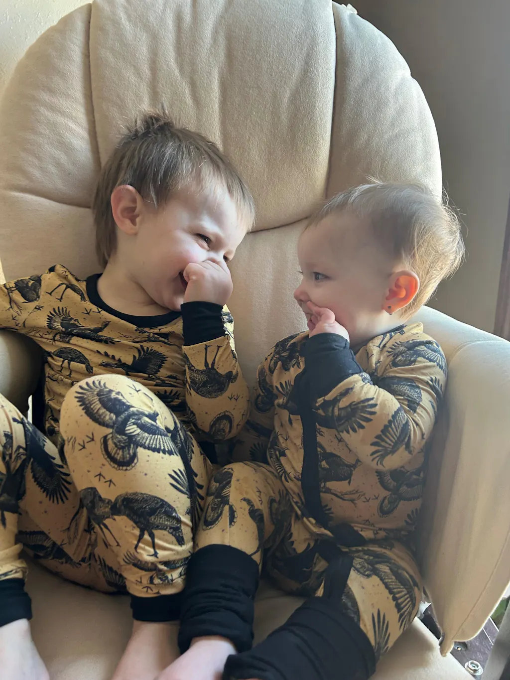 Cozy comfort meets outdoor charm in our Wild Turkey Bamboo 2-Piece Set. Featuring long sleeves and matching pants in our best-selling flying turkey print, this set is perfect for cooler days at the cabin, early morning outings, or just relaxing at home.