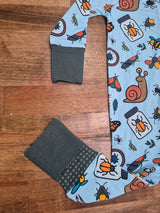 Little bug lovers will drift off in comfort with our Bug Hunt Adventures sleeper, now in a cool blue colorway with deep green trim. Frogs, snails, butterflies, bees, and fireflies bring the magic of outdoor exploring to bedtime, while playful bug jars and magnifying glasses complete the look.