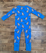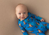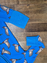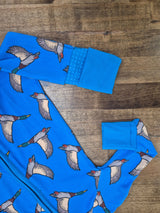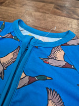 Fly into cozy comfort with our Feathered Flight Bamboo Sleeper! This vibrant blue sleeper features a bold mallard duck print that’s perfect for little ones who were raised to roam. Whether it’s nap time, early morning hunts, or hanging out with Dad, this sleeper brings all the outdoor charm.