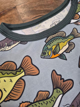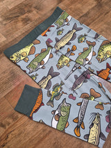 - Design: Long sleeve top and matching pants with a playful blue fish print.