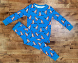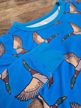 Let him soar in comfort and style with our Feathered Bamboo 2-Piece Set. This long sleeve top and matching pants feature our best-selling mallard duck print on a rich blue background, perfect for little boys who were raised to roam.