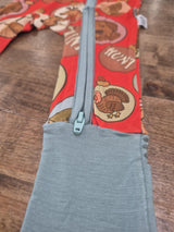 Zipper rompers run true to size with a little extra length for growth.