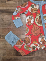 From Christmas morning cuddles to cozy winter nights, our bamboo zipper sleeper is made for every magical holiday moment. Featuring our festive outdoor-inspired print filled with holiday critters, this sleeper wraps your little one in buttery-soft comfort that’s gentle on delicate skin.