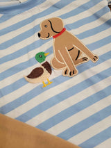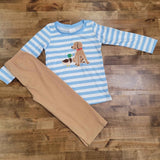 Puppy Embroidered Blue Striped Khaki Pantsuit for Boys