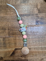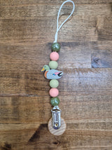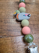 Bring soft outdoor vibes to your baby's outfit with this blush and sage green mallard pacifier clip. With a mix of matte and shimmer-finish beads, this clip is the perfect blend of rustic and pretty. It’s built to keep pacifiers clean and close — and to look good doing it.