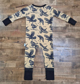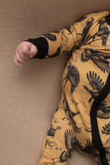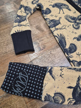 Built for the outdoors and soft enough for sweet dreams, our Wild Turkey Bamboo Sleeper is a cozy staple for little hunters in training. Featuring a bold flying turkey print on a warm tan background, this sleeper blends comfort, function, and style for every season.